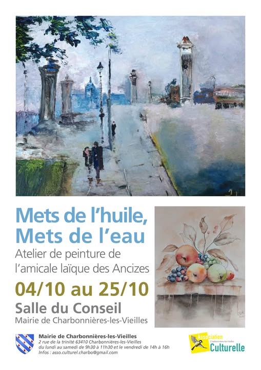 L’Amicale Laïque des Ancizes vous invite à découvrir le fruit du travail passionné de son atelier de peinture, à l’occasion de l’exposition « Mets de l’huile, Mets de l’eau ». Cet atelier, ouvert à tous, cultive la créativité et encourage chacun à explorer différentes techniques, de l’huile à l’aquarelle, en passant par le dessin et le jeu des couleurs. Encadrés par des bénévoles enthousiastes, les participants expérimentent, échangent et progressent ensemble dans une ambiance conviviale. Cette exposition met en lumière la diversité des talents et la richesse des styles qui naissent au fil des séances. Venez admirer ces œuvres uniques, témoignages d’un véritable élan collectif et d’un plaisir partagé autour de l’art pictural.